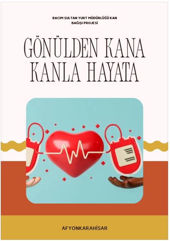 Bu proje, gençler arasında kan bağışının önemi dikkat çekmek, gönüllülük farkındalığını artırmak ve toplumsal dayanışmayı güçlendirmek amacıyla hazırlanmıştır. “Gönülden Kana, Kanla Hayata” ifadesi, bir damla kanın bile gönülden gelerek bir hayatı kurtarabileceği vurgular. Kan bağışı yalnızca tıbbi bir yardım değil, aynı zamanda bir iyilik hareketidir. Çünkü bir damla kan, bir gönülden aktığında, bir hayata umut olur. Gönüllüler, kan bağışının önemi hakkında bilgilendirici broşürler tasarlayabilir, dağıtımında ve stantlarda öğrencilere rehberlikte görev alabilirler. Sosyal medya ve yurt panolarında afiş, duyuru ve kısa bilgilendirmeler paylaşarak kampanyanın duyulmasına katkı sağlarlar. Bu pojede ki amaç gönüllüler,iletişim becerileri geliştirirken toplumda farkındalık oluşturarak iyilik hareketi yayılmasına destek olmalarıdır. Afyon Kocatepe Unıversitesi ve Afyonkarahisar Sağlık Bilimleri Unıversitesi ön lisans, lisans, yüksek lisans ve doktora öğrencileri, Farklı şehirlerdeki 18 yaş üstü kan bağışı yapabilecek sağlık şartlarına uygun tüm bireyler Kan bağışı günleride Kızılay ekipleri yönlendirmesiyle kayıt, sıra düzen ve bilgilendirme alanlarında destek sağlar. Alanının düzenlenmesi, katılımın planlanması ve katılımcı yönlendirmelerinde görev alır.