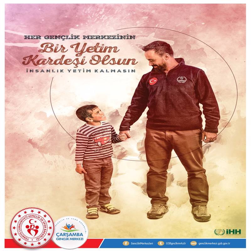 Her Gençlik Merkezinin Bir Bir Yetim Kardeşi Olsun projesi kapsamında gençlik merkezinde yetim kumbaraları dersliklere ve gönüllü işyelrlerine dağıtılmaktadır. Yetim kumbaraları her ayın son cuma günü gençlik merkezinde gönüllü odasına toplanmakta ve açılmakta. İçinden çıkan paralar sayılmakta ve tutanak tutulmaktadır. Sayılan paralar bütünlenerek sorumlu kişiye teslim edilmekte. Teslim alan kişi belirlenen yetime parayı göndermekte ve gönüllüri bilgilendirmektedir. Gönüllüler yetim kumbaralarını her ayın son haftası sınıflara dağıtacaklar, Dolan kumbaraları toplayacaklar. Gönüllüler odasında her ayın son cuma günü saat 17.00-19.00 arası kumbaraları açacak, çıkan paraları sayacak, tutanak tutacak ve sorumlu kişeye yetime ulaştırmak üzere teslim edecektir. 16-24 arası kız erkek tüm gençler gönüllü olabilirler. Gönüllüler sunumu yapabilecek düzeyde bilgisayar bilen kişilerden seçilecektir. Gönüllüler Lise ve üniversite öğrencileri ile lise ve üniversite mezunlarından seçilecektir. Gönüllülük faaliyeti her ay düzenli olarak yapılacaktır. Her ayın son cuma günü saat 17.00-19.00 arası. Faaliyet Çarşamba Gençlik Merkezinde yapılacaktır. Kendini ifade etmesini bilen, 16-24 yaş arası tüm erkek - kız gençler gönüllü olabilirler