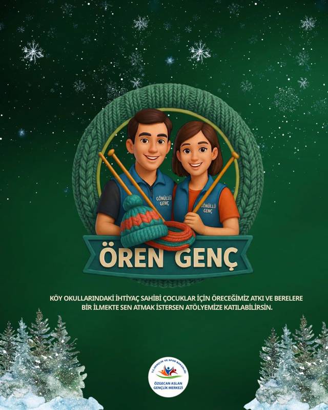 Faaliyetin Amacı; “Ören Genç” projesi, köy okullarında öğrenim gören çocuklara kış aylarında destek olmayı amaçlayan, süreklilik taşıyan bir dayanışma ve üretim kampanyasıdır. Bu proje ile gençlerin el emeğiyle ürettikleri atkı ve bereler, hazırlandıkça ihtiyaç sahibi öğrencilere ulaştırılarak paylaşma ve gönüllülük kültürü güçlendirilecektir. Faaliyet Kapsamı / İçeriği; Ören Genç; gençlik merkezimizde yürütülen atkı ve bere örme atölyeleri ile bireysel katkıları bir araya getiren uzun soluklu bir gönüllülük kampanyasıdır. Faaliyet iki temel başlıkta yürütülecektir: • Atölye çalışmaları: Gönüllü gençlerin belirli gün ve saatlerde bir araya gelerek, el sanatları eğitmeni rehberliğinde üretim yapmaları • Bağış ve bireysel katkı süreci: Atkı ve bere örerek projeye katkı vermek isteyen gönüllülerin, hazırladıkları ürünleri gençlik merkezimize ulaştırmaları Hazırlanan ürünler, belirli bir tarih beklenmeden, hazırlandıkça köy okullarına ulaştırılacaktır. Gönüllülerden Beklenen Katkılar • Gençlik merkezinde düzenlenen atkı–bere örme atölyelerine katılmak, • Atölye dışında ördüğü ürünlerle kampanyaya katkı sağlamak, • Üretim sürecinde gönüllülük ve dayanışma bilinciyle hareket etmek. ⸻ Gönüllülere Sağlanan Katkılar (Faydalar) • Sürekliliği olan bir sosyal sorumluluk kampanyasında yer alma, • El becerilerini geliştirme ve üretim sürecine dahil olma, • Toplumsal dayanışmaya doğrudan katkı sağlama, • Gençlik merkezi gönüllülük çalışmalarında aktif rol alma. Katılım Koşulları; • Gönüllülük esasına dayalı çalışmak isteyen gençler, • Atkı ve bere örmeyi bilen ya da öğrenmeye istekli olanlar, • Atölye çalışmalarına katılabilecek veya bireysel üretimle destek olmak isteyen herkes • Evde ördüğü atkı ve berelerle kampanyaya katkı sağlayarak, • Gençlik merkezi ile iletişime geçerek sürece dahil olunabilir. Faaliyet Süresi ve Yeri Süre: Kış dönemi boyunca devam edecek şekilde planlanmıştır Yer: Özgecan Aslan Gençlik Merkezi Dağıtım: Ürünler hazırlandıkça köy okullarına ulaştırılacaktır