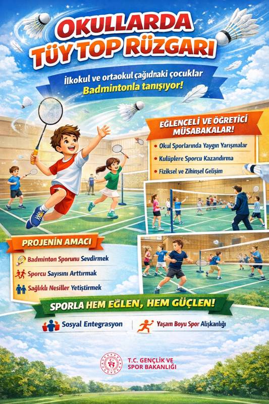 Edirne İl Milli Eğitim müdürlüğüne bağlı Edirne il merkezinde bulunan İlkokullarda eğitim öğretim gören öğrencilerin temel eğitim çağında spora yönlendirerek sporu sevdirmek, boş zamanlarını etkili ve yararlı bir şekilde değerlendirmek, kötü alışkanlıklardan korumak, ruhen ve bedenen sağlıklı vatanını ve milletini seven bireyler yetiştirerek, sosyal ve kültürel gelişimlerine katkıda bulunmak ve hoşgörü anlayışını geliştirmek, Badminton branşında eğitimler vermek ve ayrıca müsabık olmalarını sağlamak, badminton branşının tabana yayılmasını sağlamak ve ilimizde badminton lisanslı sporcu sayısını arttırmak amacıyla "İlkokullarda Tüy Top Rüzgarı" projesi hazırlanmıştır. çabukluk, tepki süresi, squash raket çalışmaları, düz vuruş, lob, drop shot ve smaç çalışması, topu rakibe isabetli atış antrenmanlarının nasıl yapıldığını öğrencilere gösterecek gönüllü gençler aramaktayız. Proje kapsamında Badminton branşı ile ilgili bilgisi olan, eskiden bu sporu yapmış olan, spor bilimleri fakültesi öğrencisi veya mezunu, badminton branşı antrenörlük belgesi olan, spora gönül vermiş gönüllü gençler aramaktayız. Gönüllü olmak isteyenlerin, buradan başvuru yaptıktan sonra Edirne Gençlik Spor İl Müdürlüğü ile iletişime geçmeleri gerekmektedir. Antrenman yer, gün ve saatleri Gençlik Spor İl Müdürlüğü ile koordineli olarak belirlenecektir. Haftada 2 gün ikişer saat şeklinde planlanmaktadır.